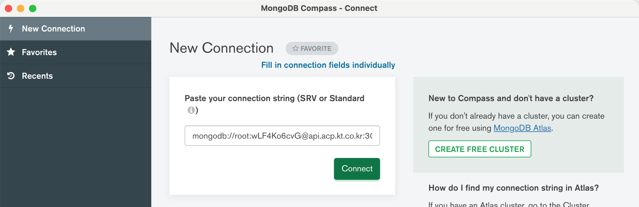 ✓ 형식: mongodb://username:password@{kubernetes IP}:{MongoDB NodePort}/admin