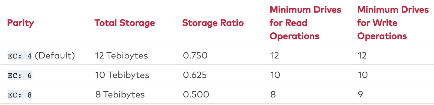 MINIO_STORAGE_CLASS_STANDARD 환경 변수로 parity blocks 수를 설정하며 기본값은 4이다.