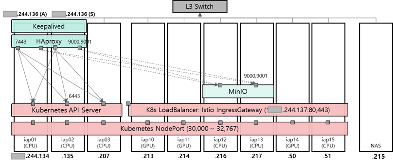 L4 대신 keepalived / haproxy를 사용하여 로드 밸런싱 하였다. 참고 문서: keepalived, haproxy for K8s
