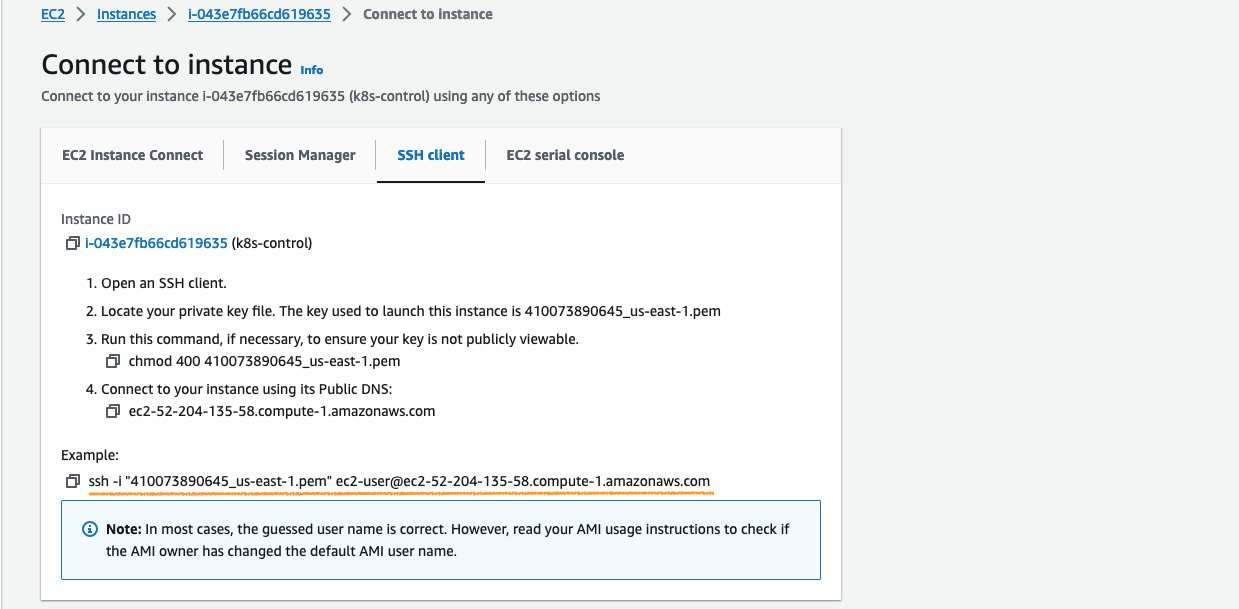 Env.: lab-k8s-control-sg(Security group), 410073890645_us-east-1 (Key pair)