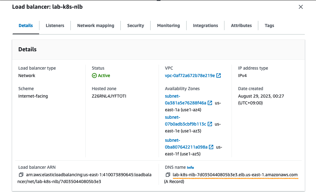 Load balancer name: lab-k8s-nlb