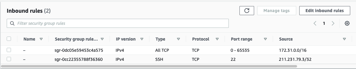 Kubernetes 구성을 위하여 Amazon EC2(22 포트)에 접속할 수 있도록 소스로 MyIP를 추가하였습니다. 각자의 환경에 맞게 수정해야 됩니다.