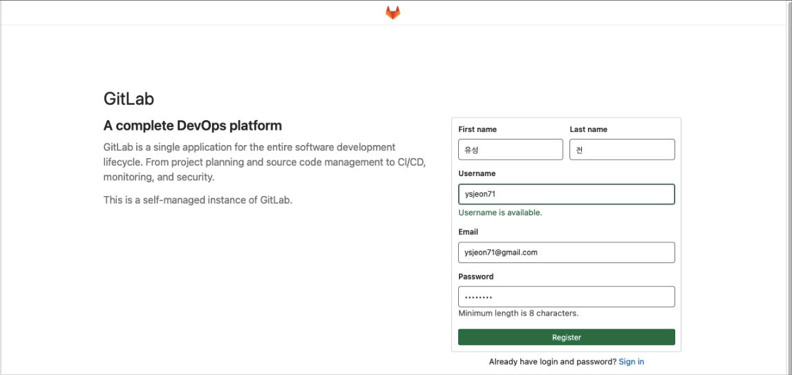 GitLab member or Email address: ysjeon71