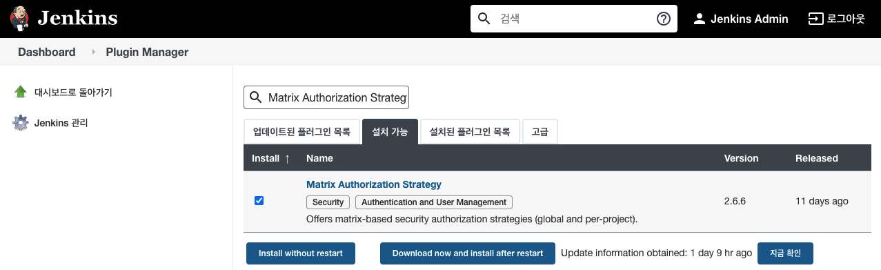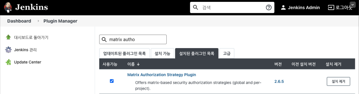다운로드: https://updates.jenkins.io/download/plugins/matrix-auth/2.6.6/matrix-auth.hpi