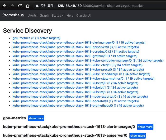 kube-prometheus-stack-1613-prometheus NodePort 10.96.39.250 <none> 9090:30090/TCP 9m59s