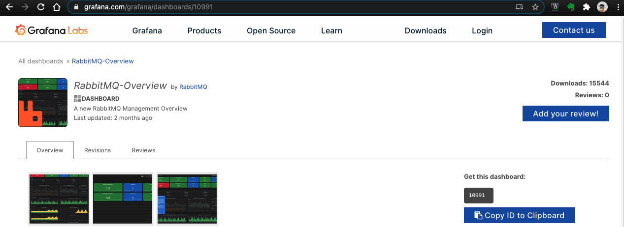 ✓ RabbitMQ : 10991(official), https://grafana.com/grafana/dashboards/10991