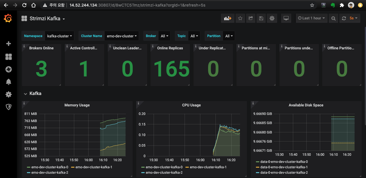 - Strimzi를 모니터링 하기 위해 Prometheus, Grafana, Jaeger를 구성하고 Strimzi 설정을 변경