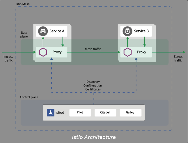 - Istio Architecture v 1.9 (Kubeflow 1.2에는 istio 1.3이 포함되어 있음)