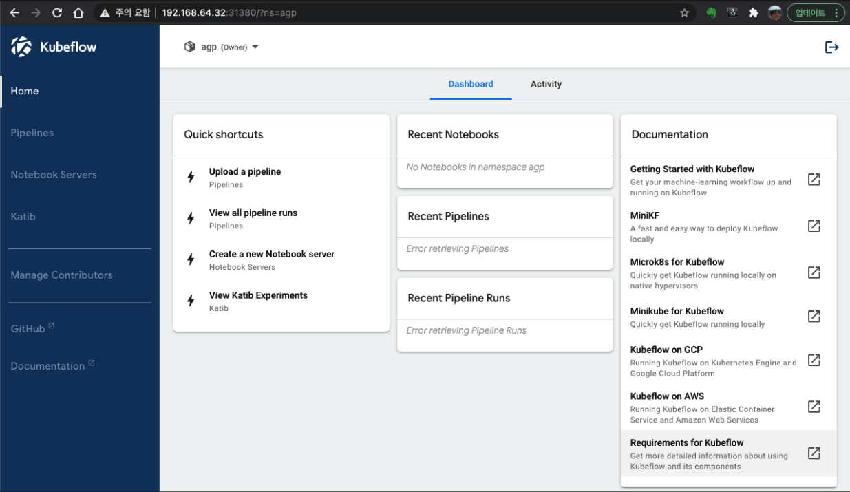 ▷ Problem: Kubeflow dashboard 접근시 http 503 에러 발생