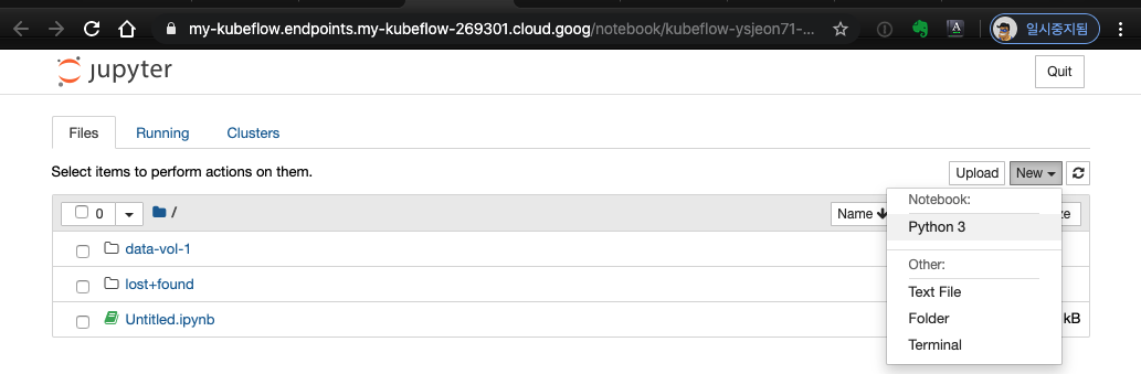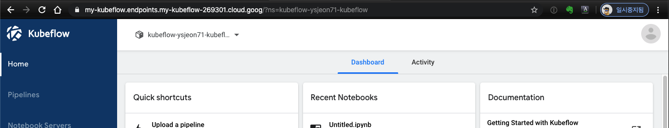 c. Kubeflow 접속 (URL: my-kubeflow.endpoints.my-kubeflow-269301.cloud.goog)