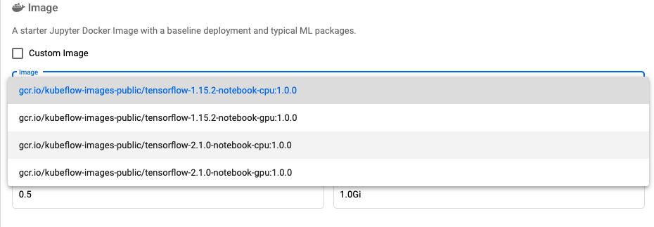 If you choose a GPU image, make sure that you have GPUs available in your Kubeflow cluster.