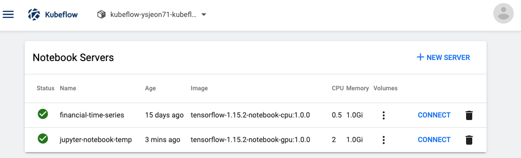 - Notebook Servers >> NEW SERVER 메뉴 선택