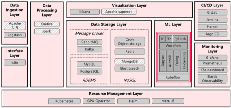 ✓ Kubernetes 기반 하에 다양한 오픈소스들을 통합하여 구축한 플랫폼