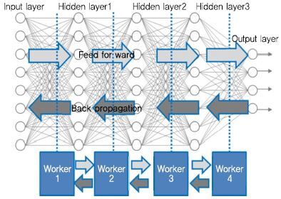 ✓ 딥러닝 모델의 크기가 증가되어 하나의 컴퓨터에서 처리하지 못 하는 경우 모델을 분할하여 학습하는 방법