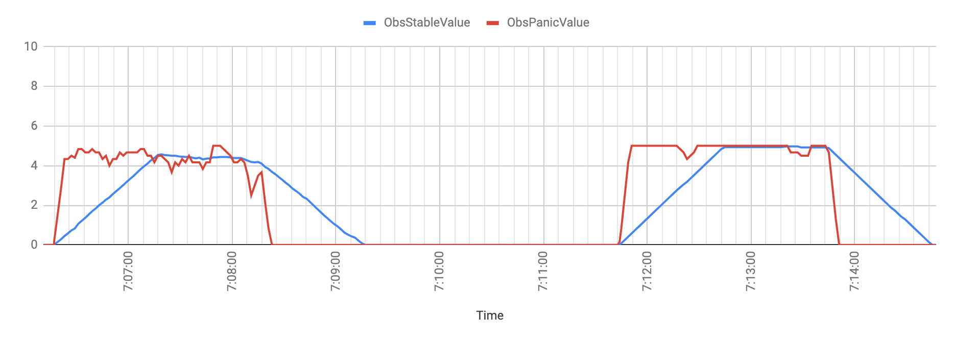 {"level":"debug","ts":"2021-10-12T04:41:15",...,"msg":"Observed average scaling metric value: 0.000, targeting 7.000.","commit":"bcda051","knative.dev/key":"yoosung-jeon/autoscale-go-hnfpq","metric":"concurrency","mode":"panic"}
